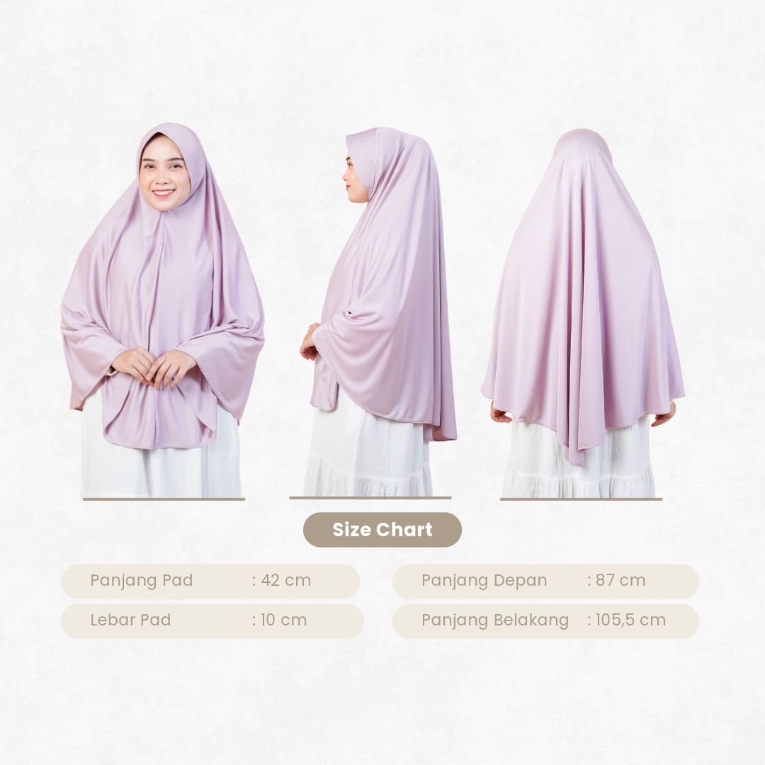 Ukuran Bergo bagian depan menutupi bagian Dada dan PET yang di gunakan ANTEM (anti tembem).
